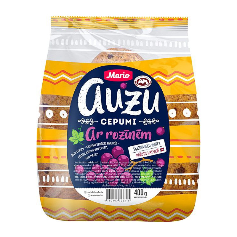 мука пшеничная, сахар, жир растительный (масло ши рафинированное 60%, масло пальмоядровое рафинированное 40%), мука овсяная (12,02%), вода, изюм, темный инвертный сироп (сахар, вода, регуляторы кислотности: кислота лимонная, гидрокарбонат аммония) , натрия гидрокарбонат), солод ячменный, соль поваренная, разрыхлители: гидрокарбонат натрия, гидрокарбонат аммония, корица, ароматизатор ванилин.