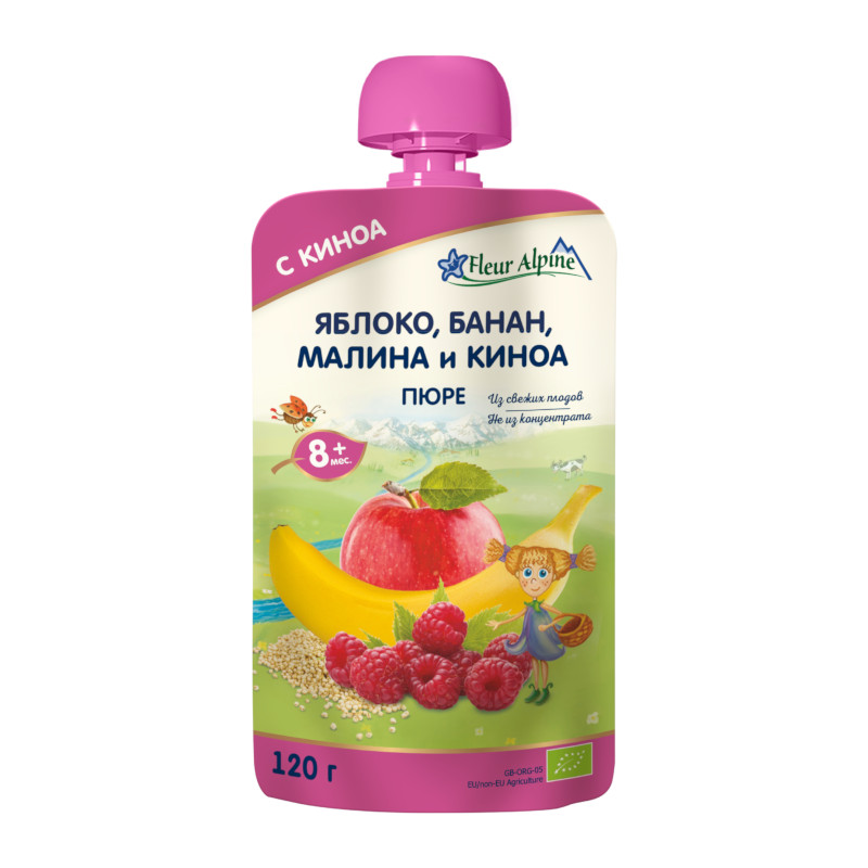 Fleur Alpu ābolu, banānu, aveņu un kvinojas biezeni novērtēs ne tikai mazuļi, bet arī vecāki bērni. Izgatavots no svaigiem augļiem - nevis no koncentrāta. Nav pievienots ūdens, sāls, cukurs, ciete. Nav konservantu, aromatizētāju, krāsvielu.