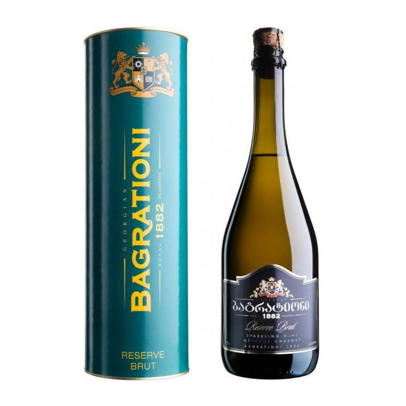Dzirkstošais vīns baltais Bagrationi Reserve brut 11.5% tubusā