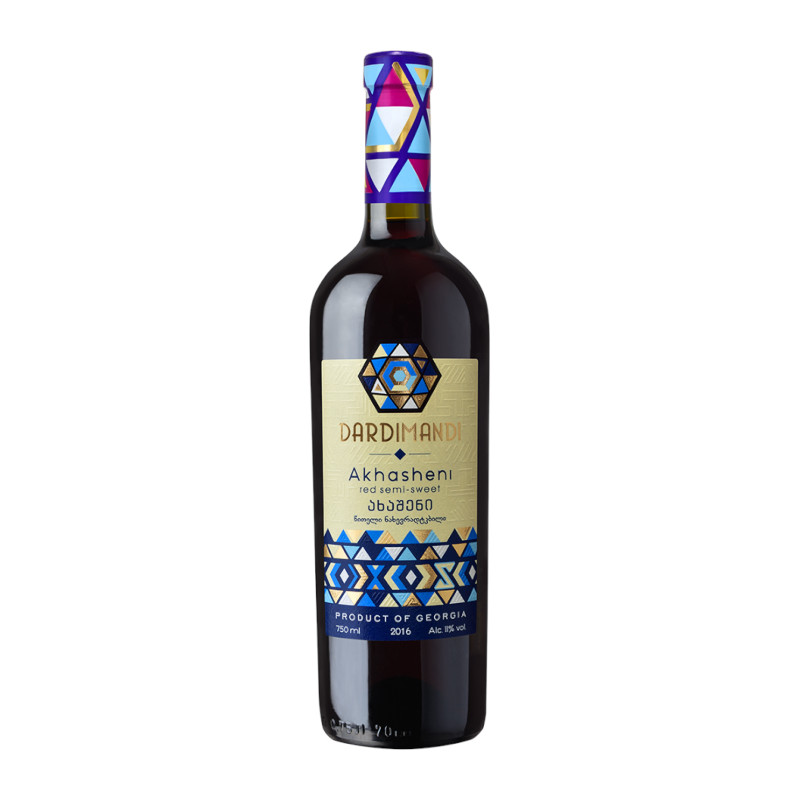 Akhasheni ir pussalds sarkanais galda vīns. Alkohola saturs nepārsniedz 10,5-12%. Cukura saturs vīnā ir 3-5 grami uz kubikcentimetru. Titrējamais skābums ir 5 grami uz kubikdecimetru (titrēšana ir vielas kvantitatīva noteikšana šķīdumā).