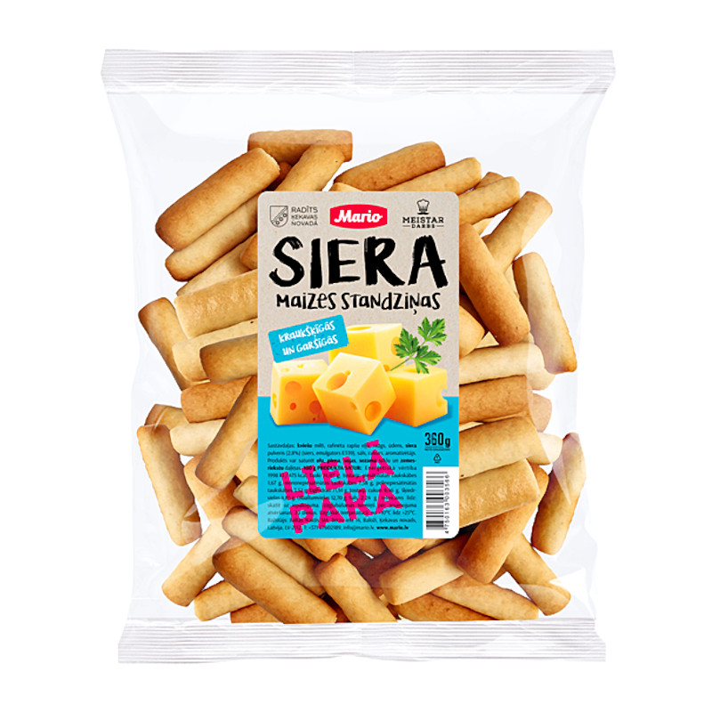 kviešu milti, rafinēta rapšu eļļa, raugs, ūdens, siera pulveris (2.8%) ( siers, emulgātors E339), sāls, cukurs, aromatizētājs.
