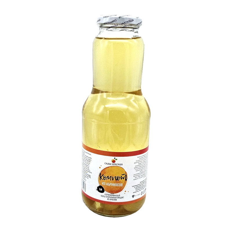 "Сады Арагаца" Aprikožu kompots ir viegls un atsvaidzinošs dzēriens, kura pagatavošanai izmantotas tikai dabīgas sastāvdaļas. Pēc klasiskajām receptēm kompotu gatavo no gatavām aprikozēm, ūdens, cukura un citronskābes. Kompota ražošanā netiek izmantotas krāsvielas, aromatizētāji un konservanti. Aprikožu augļi satur lielu daudzumu vitamīnu un minerālvielu. Aprikoze ir Armēnijas simbols, tieši šis auglis simbolizē oranžo krāsu valsts karogā, bet tiek uzskatīts arī par dzīvības simbolu šajā siltajā un viesmīlīgajā valstī. Pateicoties īpašai tehnoloģiskai apstrādei, tiek saglabātas visas aprikožu derīgās īpašības. Kompotu lej videi draudzīgos stikla traukos.