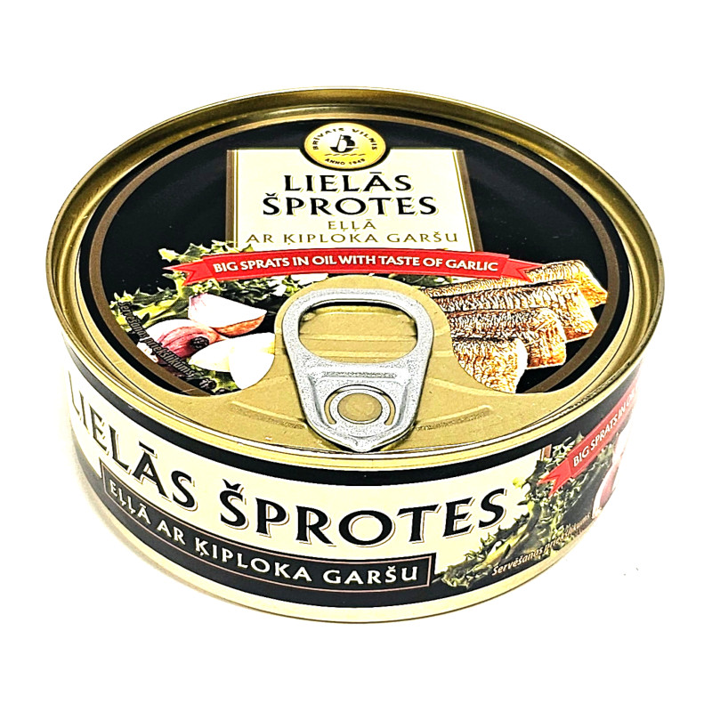 “Brīvais Vilnis“ lielas šprotes eļļā ar ķiploka garšu, burciņa ar atslēgu