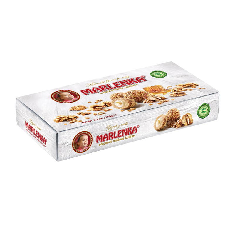 MARLENKA® medus bumbiņas tiek izgatavotas pēc vecās Armēnijas ģimenes receptes no augstākās kvalitātes produktiem, neizmantojot konservantus vai sintētiskas krāsvielas. Par izcilu kvalitāti un ārkārtīgu izturību Čehijas Republikas Zemkopības ministrija piešķīra šim produktam nacionālo KLASA kvalitātes zīmi. Pateicoties unikālajai receptei, kvalitatīvajiem produktiem un iesaiņošanas metodei, MARLENKA® medus bumbiņām ir ārkārtējs glabāšanas laiks. - 90 dienas temperatūrā no 2 ° C līdz 24 ° C - 8 mēnešus, ja to uzglabā temperatūrā līdz 8 ° C - 24 mēneši, sasaldējot līdz -18 ° C